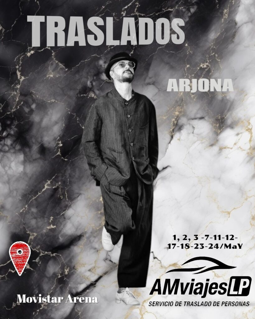 Traslados al recital de ARJONA. ¡Desde La Plata al show más esperado! 📅 Fechas: 1-3,7,10,11,12 de Mayo y 17-18-23 y 24 MAYO 📍 Lugar: Movistar Arena